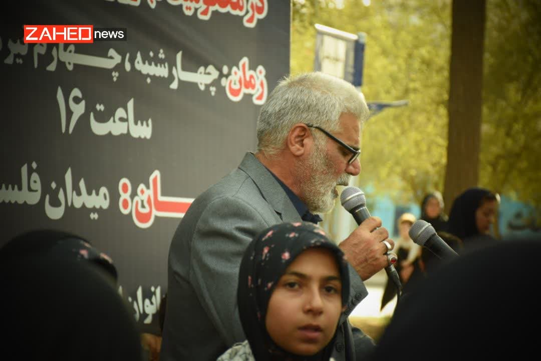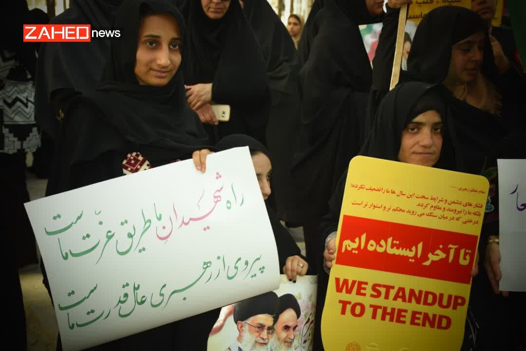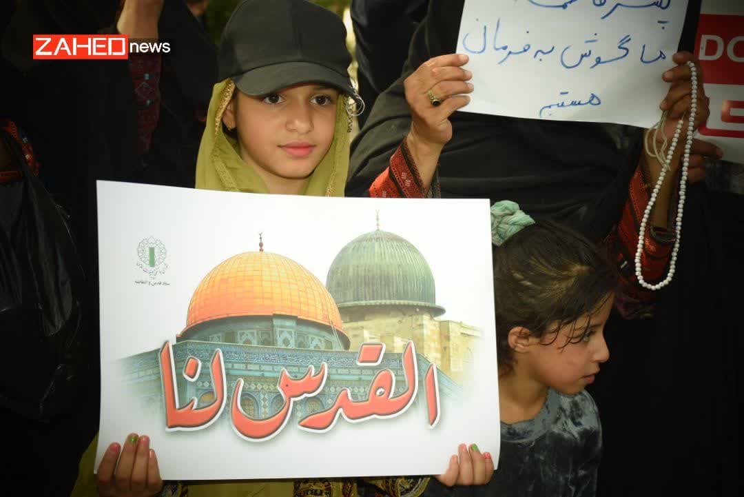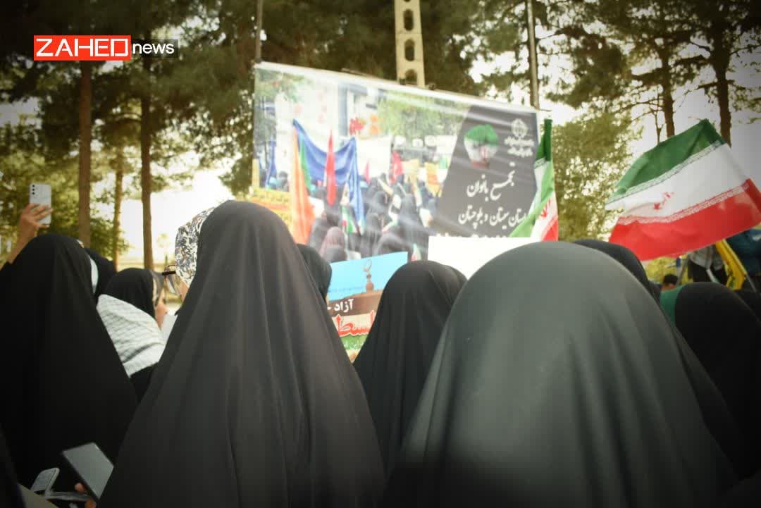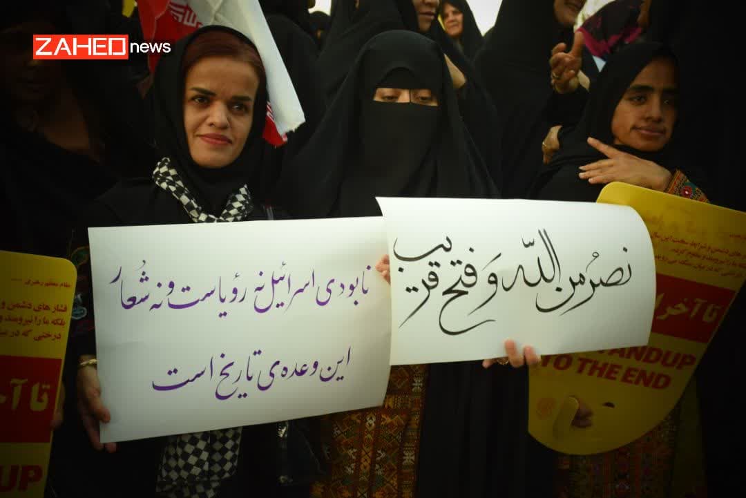 بانوان سیستان و بلوچستانی در تجمعی د رمیدان فبسطین شهرستان زاهدان اعتراض خود را نسبت به جنایات رژیم سفاک صهیونیستی اعلام کردند.