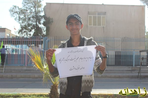 به گزارش زاهدانه، جمعی از جوانان و نوجوانان شهرستان زاهدانی در روز 13آبان به کمپین « مشت من گلوله ای به سینه استکبار است» پیوستند.