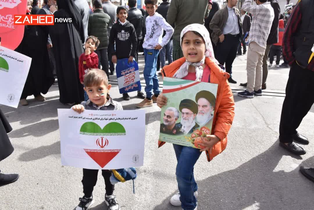 زاهدنیوز»، از پیر و جوان تا زن و مرد، همگی با پرچمهای سهرنگ ایران در دست، خیابانها را به صحنهای از همبستگی و ایستادگی تبدیل کردند و با شعارهای کوبنده، پیام استقامت و وحدت را به گوش جهان رساندند.