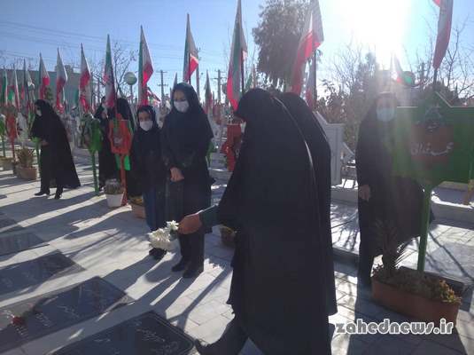 بانوان زاهدانی همزمان با هفته تبیین نقش سیستان و بلوچستان در دفاع مقدس، مزار شهدای این شهرستان را عطرافشانی و غباررروبی کردند.