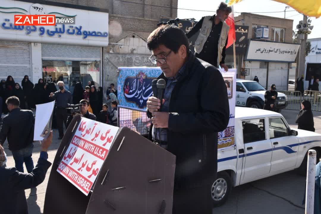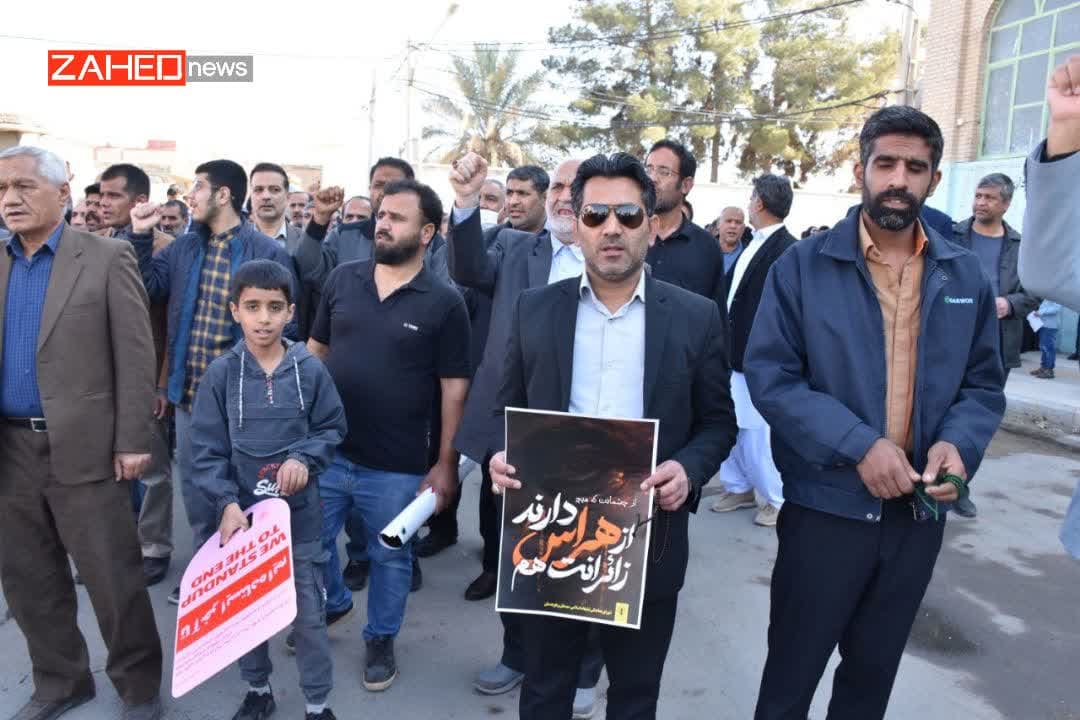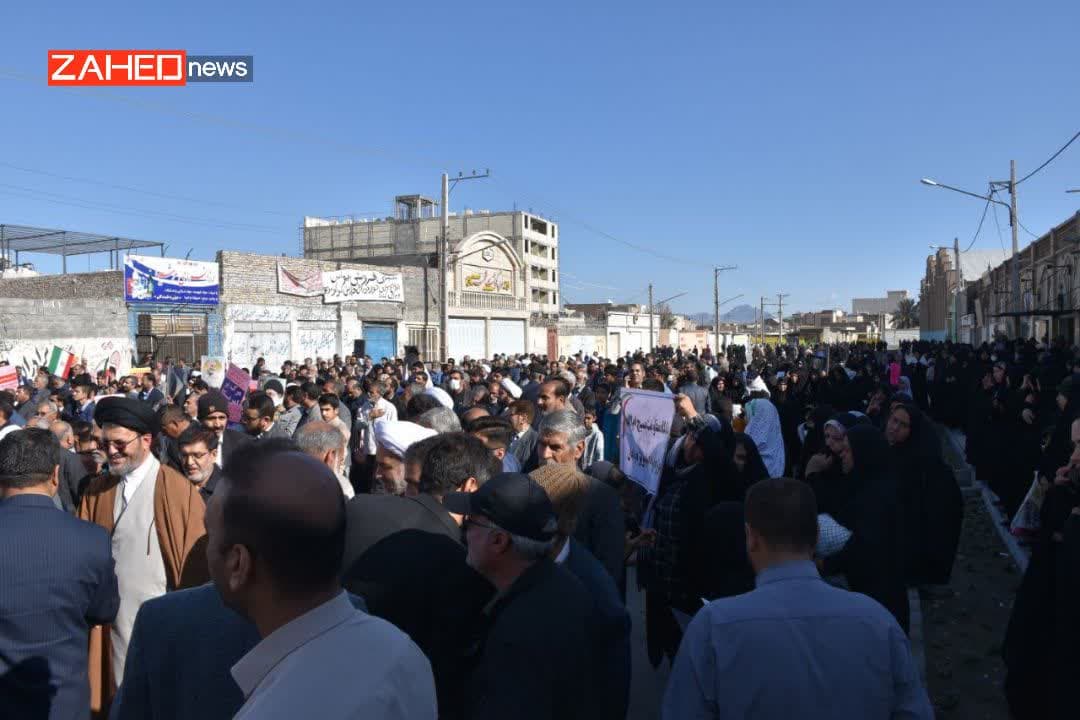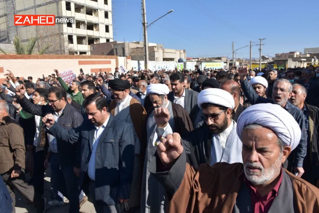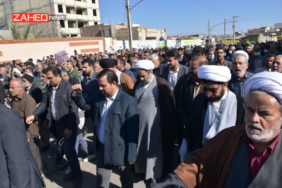 راهپیمایی مردم ولایی زاهدان هم‌زمان با سراسر کشور در محکومیت حادثه تروریستی گلزار شهدای کرمان برگزار شد.