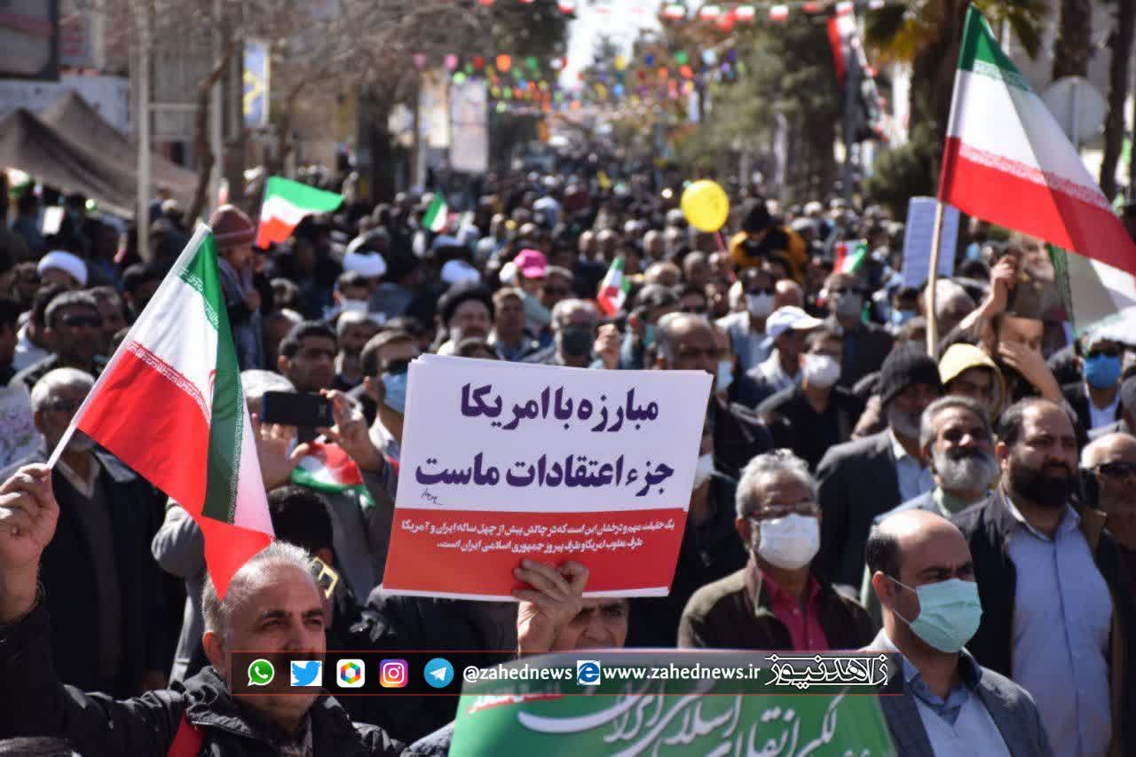 در زاهدان اقشار مختلف مردم در راهپیمایی ۲۲ بهمن آمدند تا بگویند حافظ نظام و انقلاب خود هستند و به دشمنان اجازه نخواهند داد با دسیسههای مختلف به اهداف شومشان برسند.