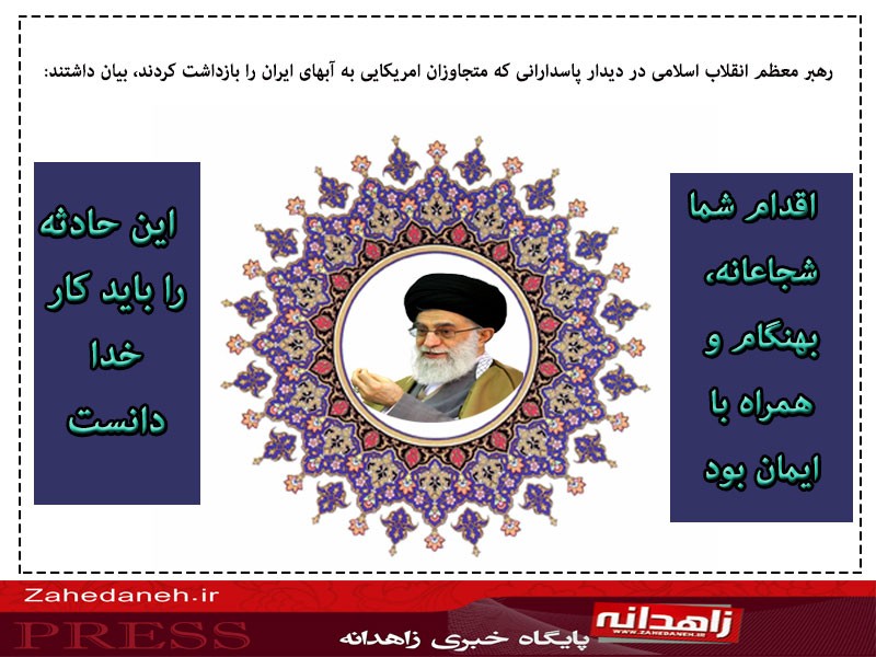 عکس نوشته بیانات مقام معظم رهبری در دیدار با پاسدارانی که متجاوزان آمریکایی به آبهای ایران را بازداشت کردند در پایگاه خبری زاهدانه منتشر شد.