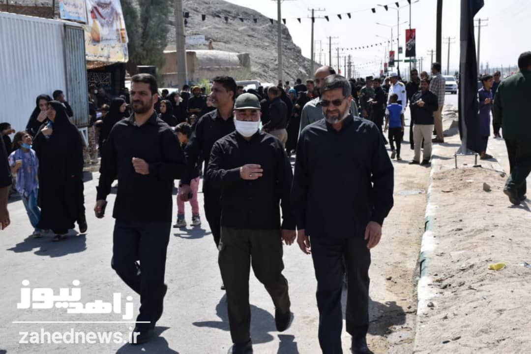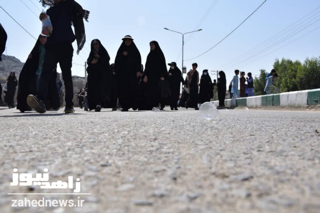 عاشقان سرور و سالار شهیدان حضرت اباعبدالله الحسین علیه السلام در زاهدان امروز از گلزار شهدای این شهرستان تا کهف الشهدا همراه و هم نوا با زائران اربعین حسینی پیاده روی کردند.