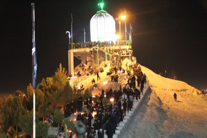 عزاداران سید و سالار شهیدان حضرت اباعبدالله الحسین(ع) همنوا با یتیمان کربلا در شام غریبان در جبل الشهداء شهرستان زاهدان گرد هم آمده و گریستند.