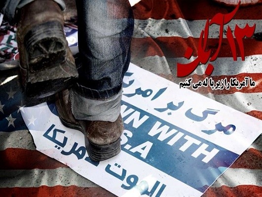 عکس نوشته/ 13آبان روز ملی مبارزه با استکبار جهانی/ آمریکا را زیر پا له می کنیم