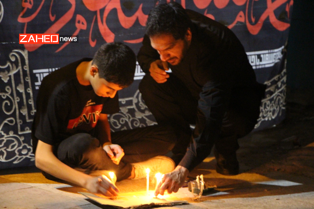 به گزارش پایگاه خبری تحلیلی زاهدنیوز، غروب عاشورا که میشود مردم از هر سو در ماتم اباعبدالله الحسین (ع) زانوی ماتم بغل کرده و به یاد شهدای دشت کربلا همنوا با حضرت زینب (س) در گوشه کنار این شهر شمع روشن کردند و به عزاداری پرداختند.