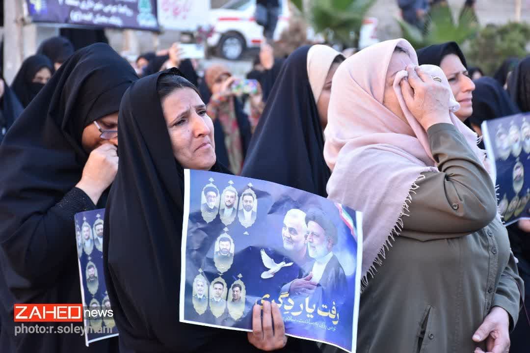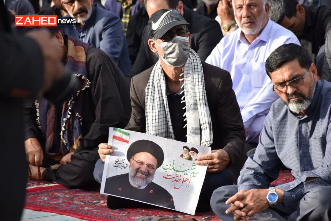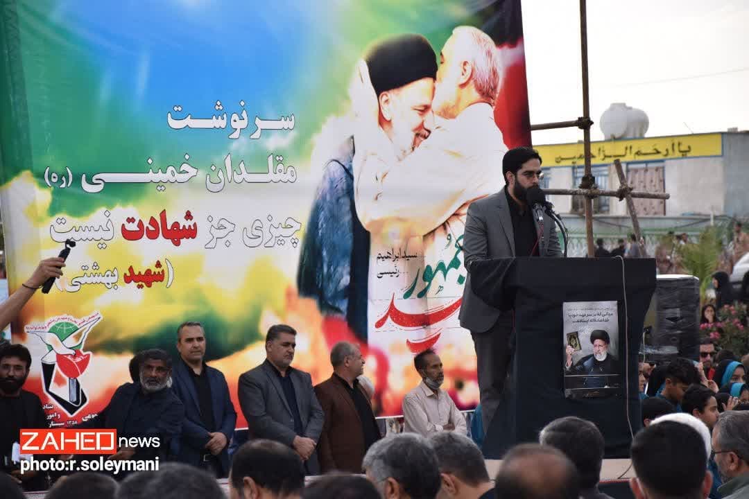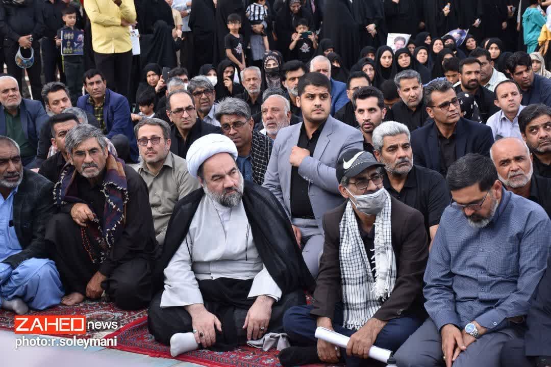 با حضور پرشور آحاد مردم و مسئولین اجتماع امت در عزای خادم ملت که در عزای رئیس‌جمهور شهید بود در میدان امام حسین (ع) زاهدان برگزار شد.