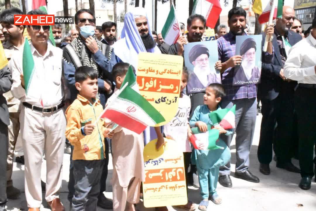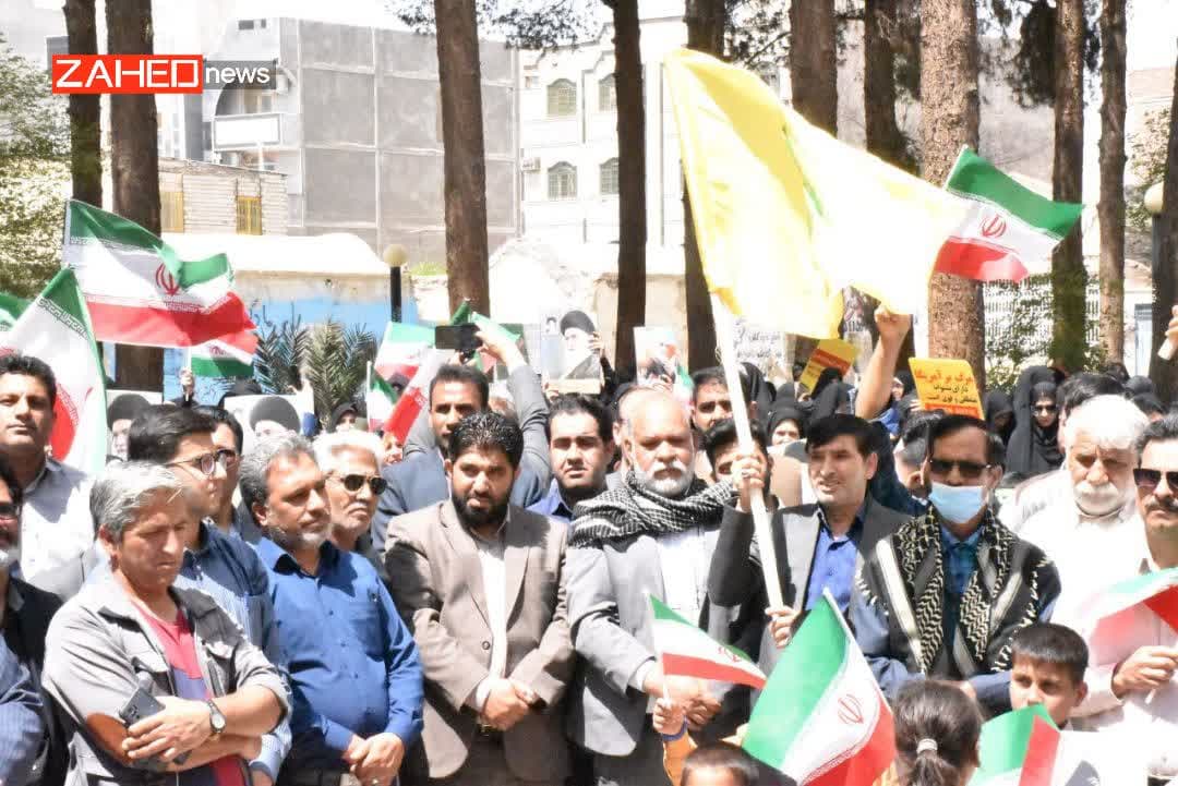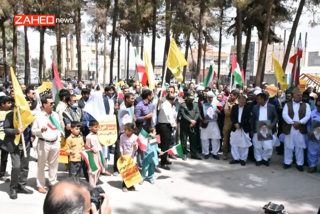 صبح امروز مردم ولایتمدار زاهدان با تجمع در میدان فلسطین این شهر از پاسخ کوبنده سپاه به جنایت های متعدد رژیم صهیونیستی حمایت کردند.