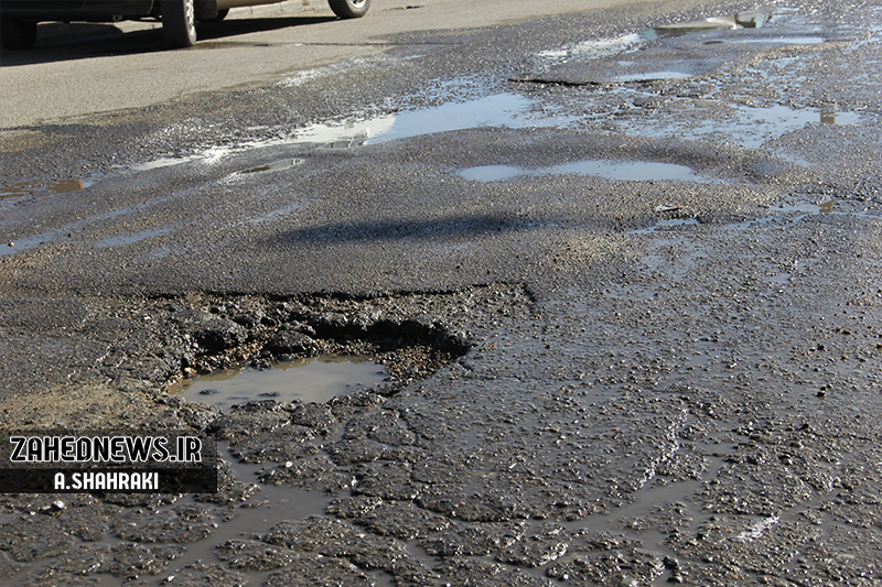 پس از بارندگی های اخیر چاله های خیابان های شهر زاهدان بیشتر از قبل خودنمایی می کند.
