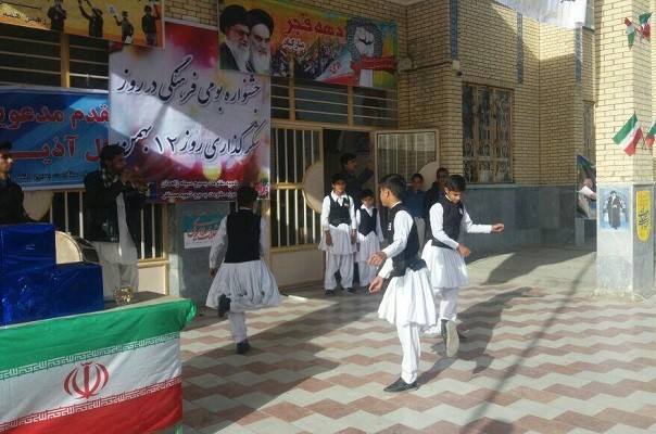 به مناسبت گرامیداشت دهه مبارک فجر یک جشنواره بومی فرهنگی با شرکت دانش آموزان مدارس در شهرستان زاهدان برگزار شد.