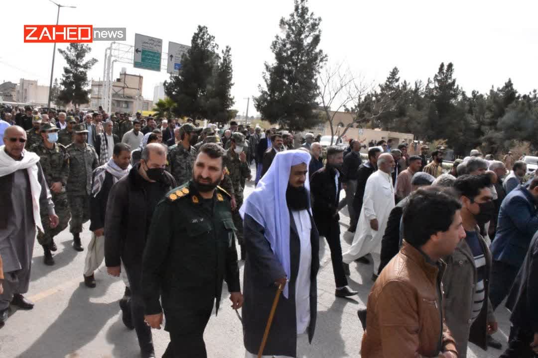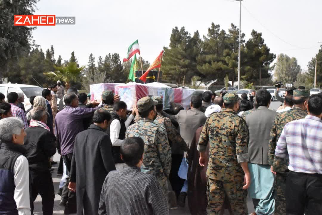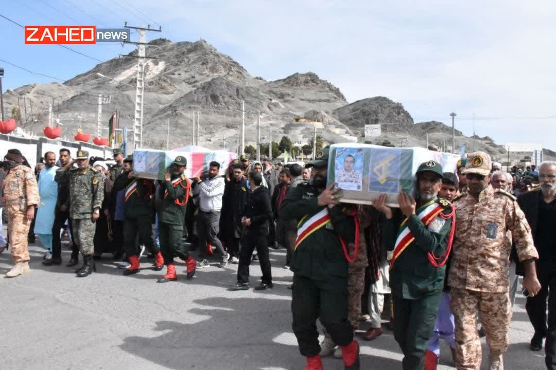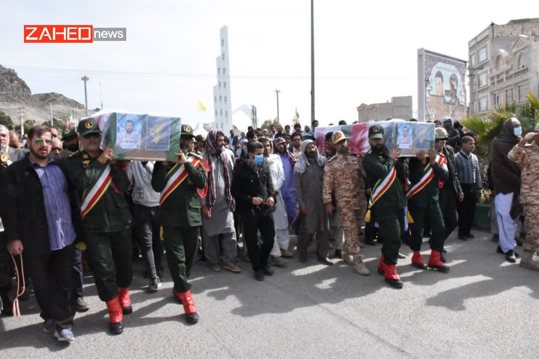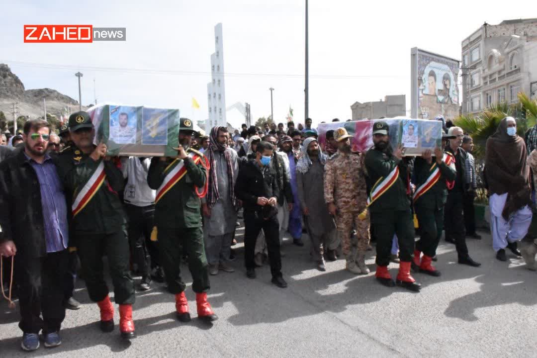 پیکر پاک و مطهر شهیدان محمد انور گمشادزهی و شهید عبدالحسین بلوچ با حضور مردم زاهدان تشییع و تدفین شد.