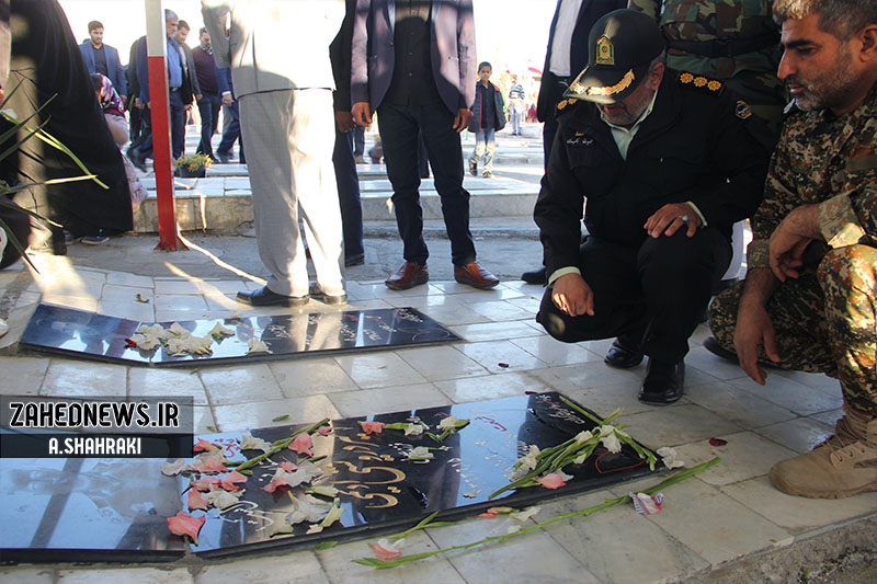 زاهدنیوز ؛ به مناسبت دهه مبارک فجر و با حضور استاندار سیستان و بلوچستان، فرماندهان نظامی و انتظامی، جانبازان، خانواده شهدا، مسئولین و جمعی از مردم، مزار شهدای زاهدان غبارروبی و عطر افشانی شد.
