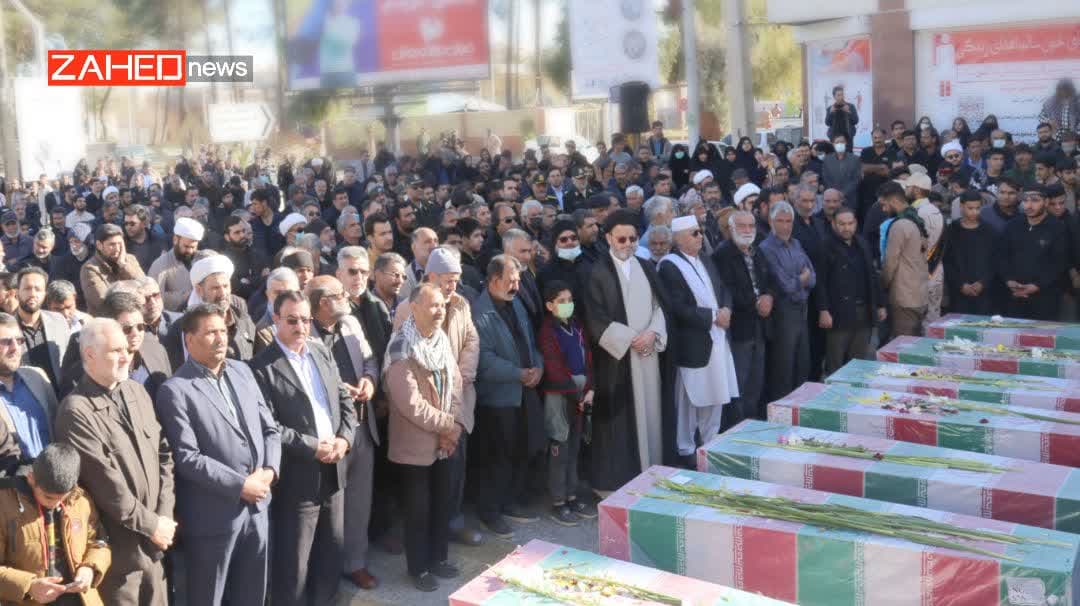 مردم زاهدان هم‌زمان با شهادت بی‌بی دوعالم حضرت صدیقه کبری (س) با پیکر پاک و مطهر شهدای گمنام وداع کردند.