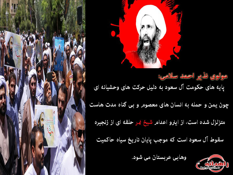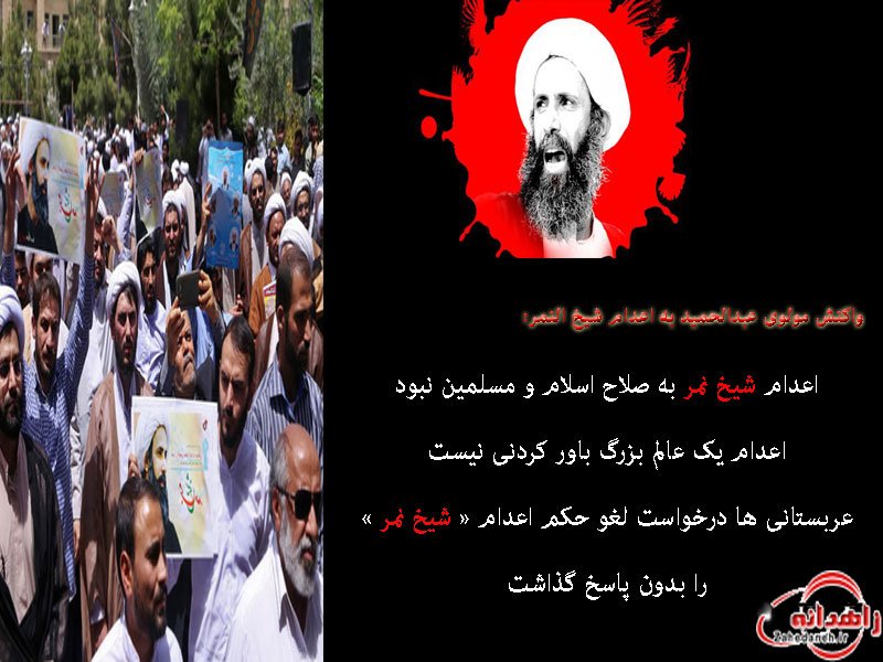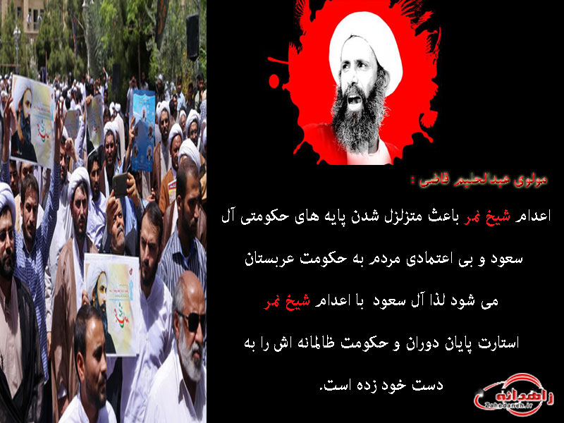 عکس نوشته هایی به مناسبت اعدام شیخ نمر توسط حکومت آل سعود در پایگاه خبری زاهدانه منتشر شد، جهت مشاهده بر روی آن کلیک کنید.