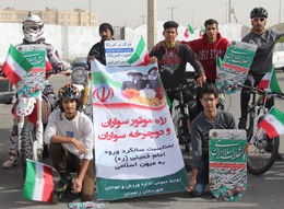 دوچرخه سواران و موتور سواران ورزشکار در طول این مسیر با در دست داشتن پرچم های جمهوری اسلامی و در حرکتی هماهنگ و منظم، سی وششمین سالگرد پیروزی انقلاب اسلامی ایران را گرامی داشتند.