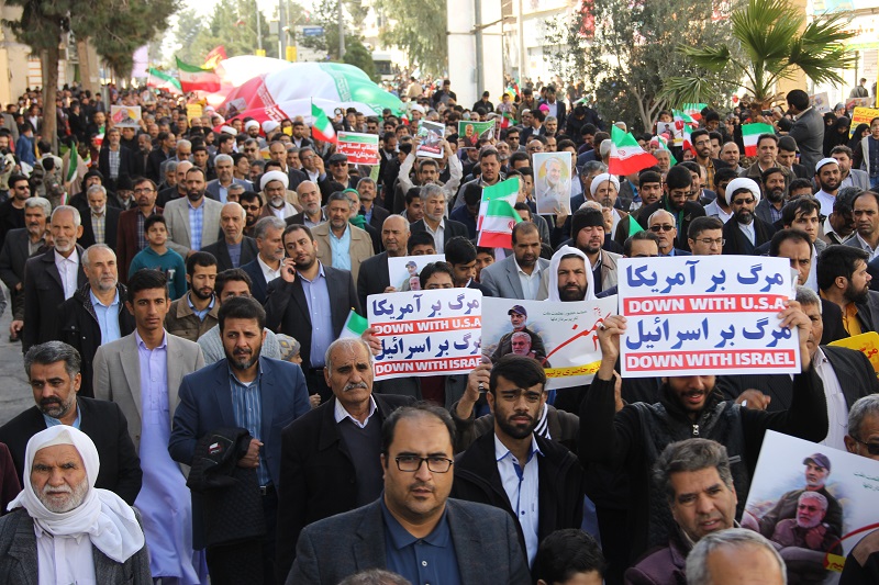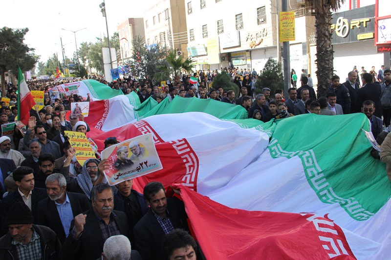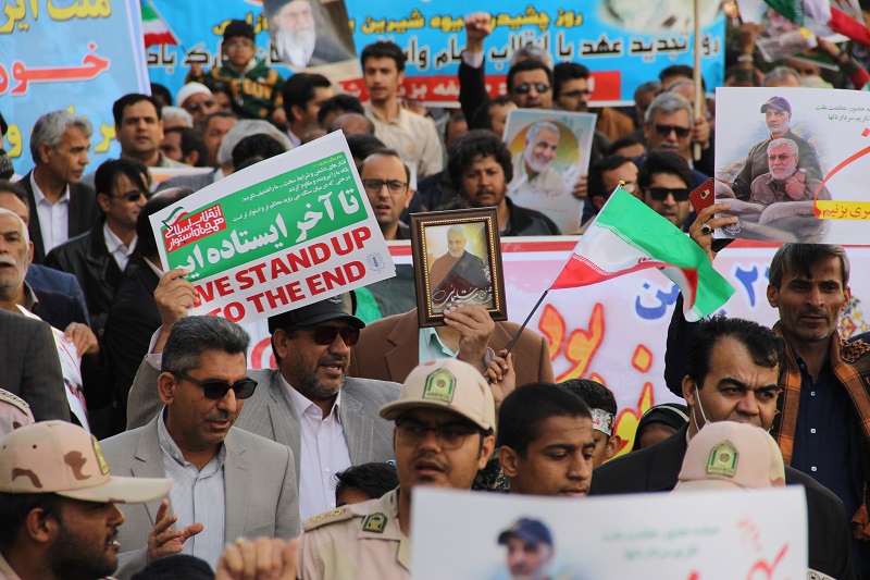 مراسم راهپیمایی 22 بهمن 98 همزمان با اربعین شهید سپهبد حاج قاسم سلیمانی در زاهدان برگزار شد.